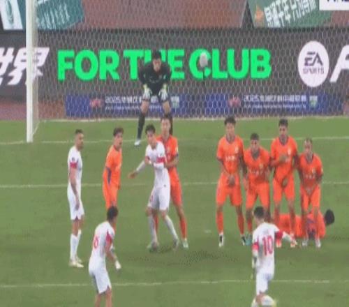 第64分钟,克雷桑开出右侧任意球,李小恒头球冲顶破门,1比1!